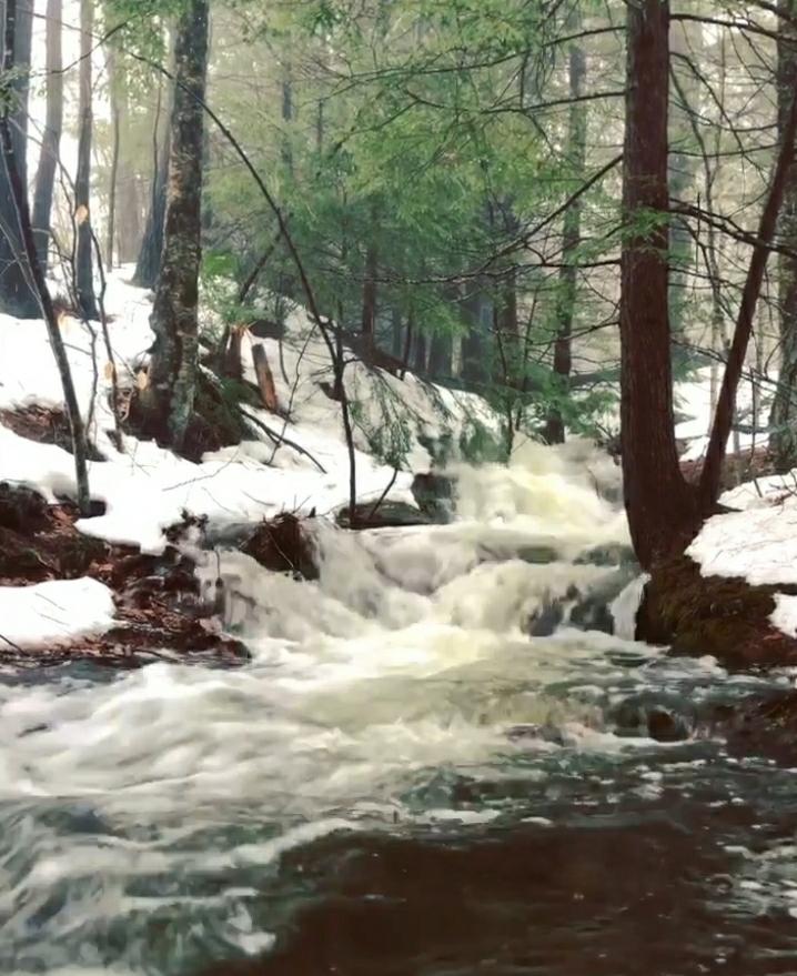 The trail begins at the Baby Flume Picnic Area. From the sign describing the geology of the Notch, a trail heads northeast, to the right from the Saguinary Ridge Trail. In less then a 0.1 mile it reaches the gorge carved out by Flume Brook. The falls tumble 18 feet over a set of three drops. There are additional smaller cascades and a pool further downstream.