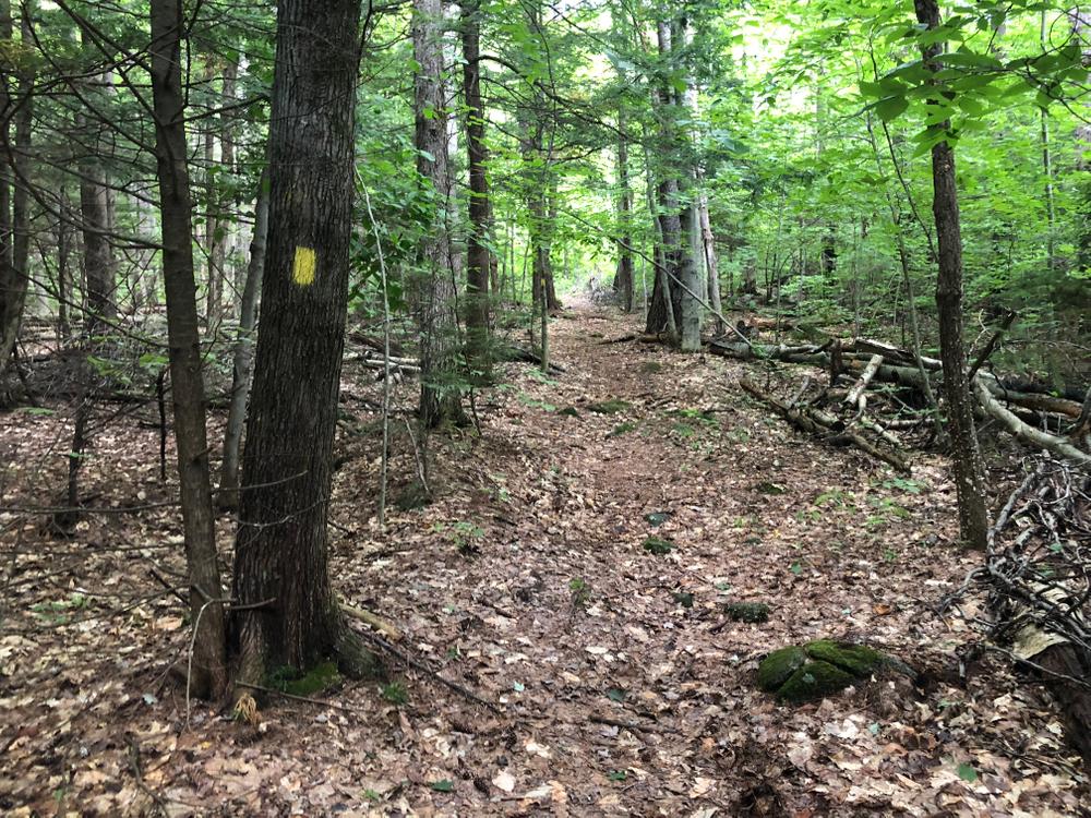 Chandler Trail: This trail travels north from the Southern Trailhead, intersecting the Cross Minks trail after 0.7 miles near the summit of Mink Hill where a fallen fire tower sits.