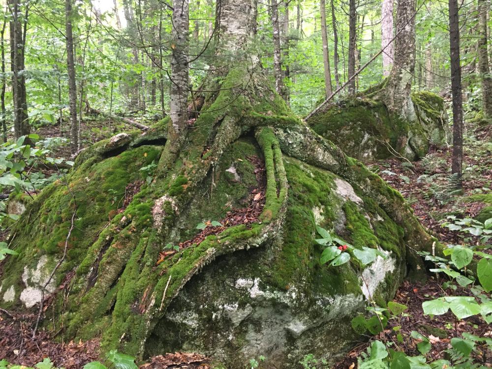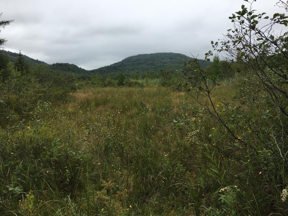 The main trail continues through the woods, primarily deciduous forests with interesting glacial erratics along the way, for another mile and a half before coming to Nash Bog, which the trail has been paralleling at a distance through the woods until this point. The open bog offers rustic and serene views of the surrounding hills. Past the bog, the trail turns right and parallels Pike Brook until it intersects with Nash Stream Road at the beginning of the Gadwah Trail.