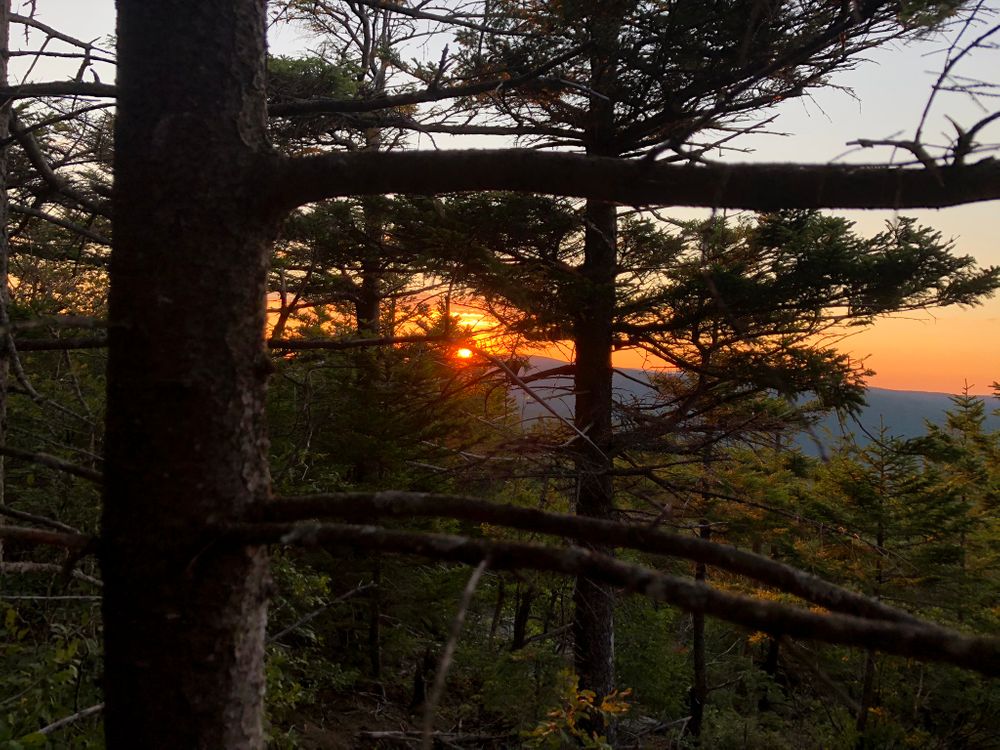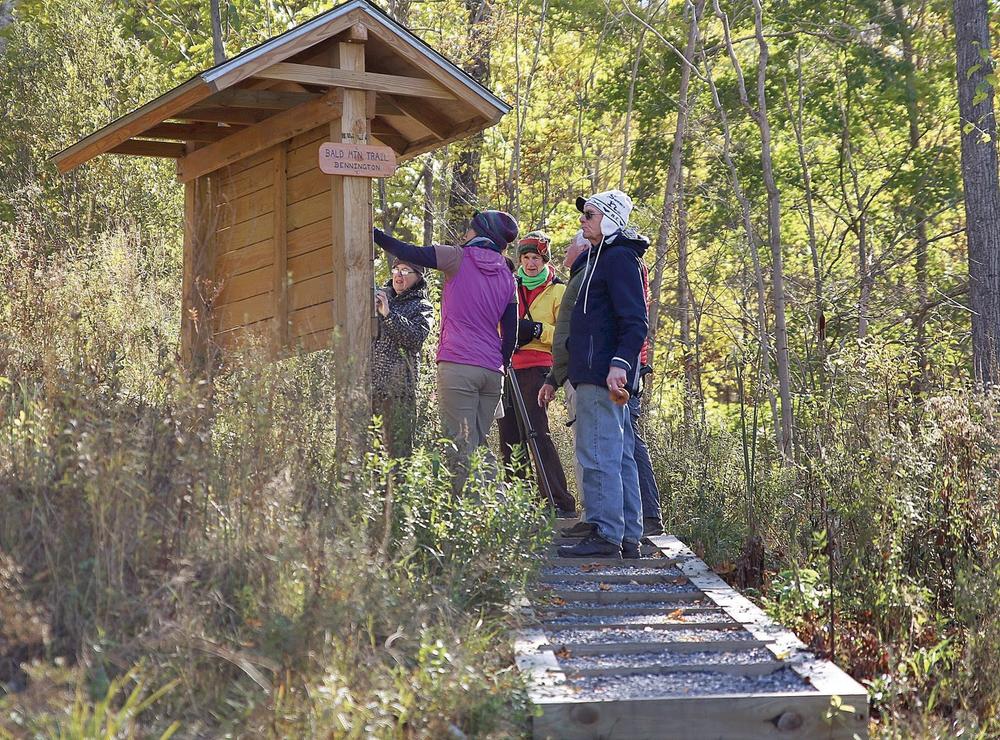 The east side of the Bald Mountain trail follows an old road that provides access for a few local camps and then at 0.3 miles, at the Forest Service boundary marked with red paint, turn left onto the trail and follow the blue blazes. The trail climbs steadily and at 1.6 miles, the trail meets a spur trail leading to a seasonal spring at “Bear Wallow.” The trail reaches the West Ridge trail at 2 miles.