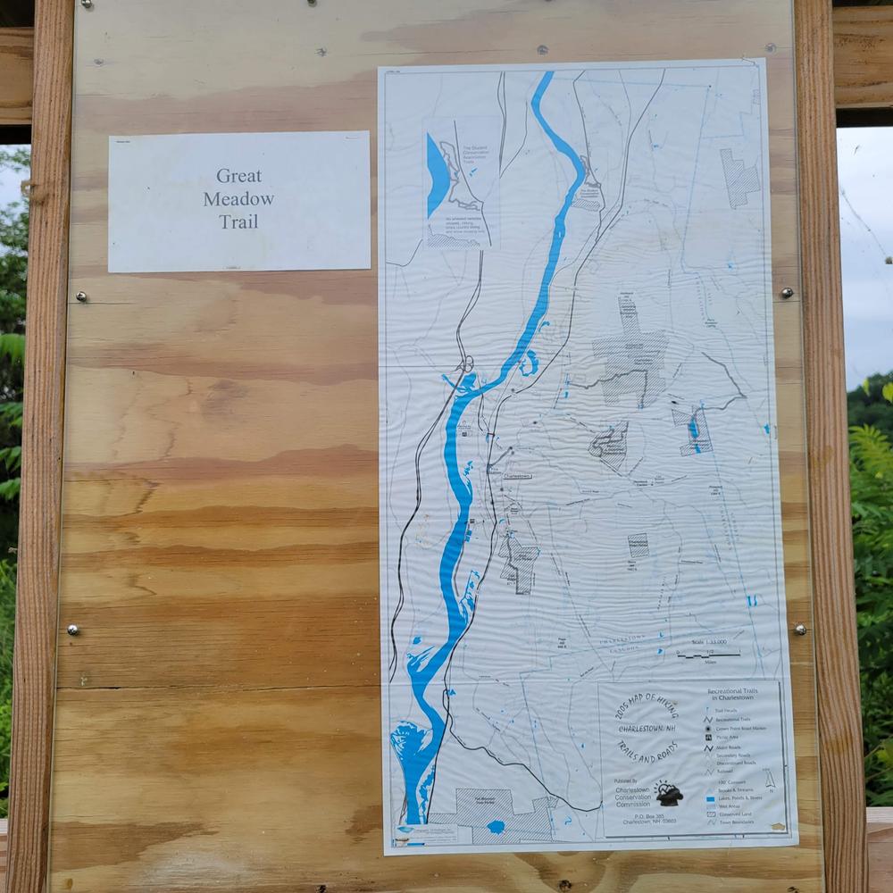 Charlestown Conservation CommissionStarting in the center of Charlestown, head south on Route 12 until you reach the southern end of town, just past the Charlestown Middle School. Take a right onto Lower Landing Road and follow it to the end. Plenty of parking. If looking at the river, the trail starts through a few trees to the left. Follow the mowed section past the water treatment plant.