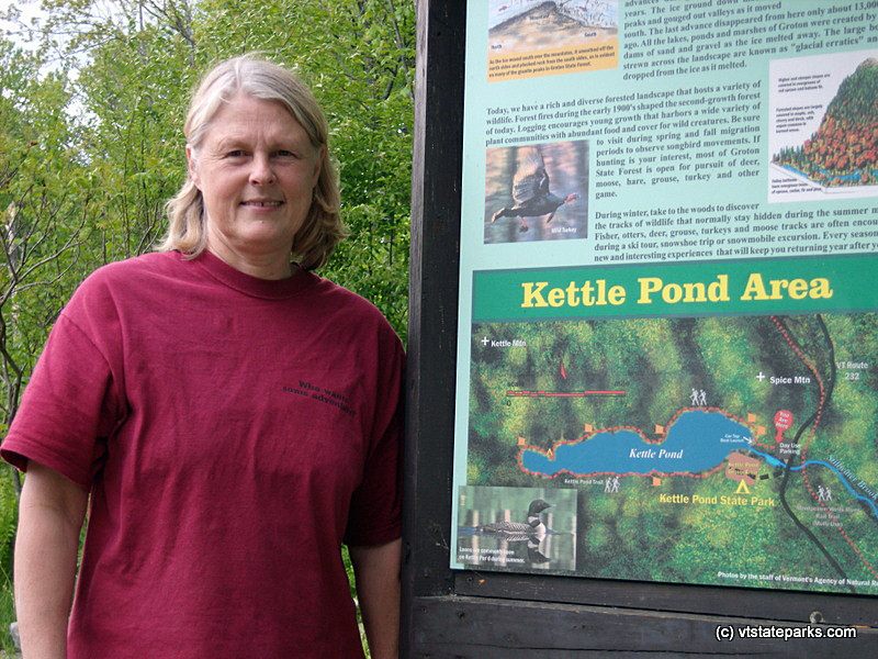 VT Dept. Forests, Parks & Recreation District 5: St. Johnsbury DistrictKettle Pond Trailhead is located at a turn-out on VT-232, 6.5 miles south of US-2 in Marshfield and 7 miles north of US-302 in Groton.