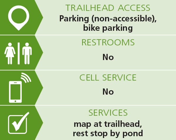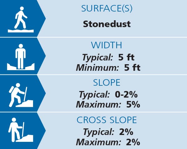 The trail leaves the parking lot off VT-232 and travels 0.17 miles along a 5-foot wide, compacted stone dust path to the water's edge and the boat launch. This section has minimal slopes and cross slopes. See Trail Access Information below for more information about this Accessible Experience.