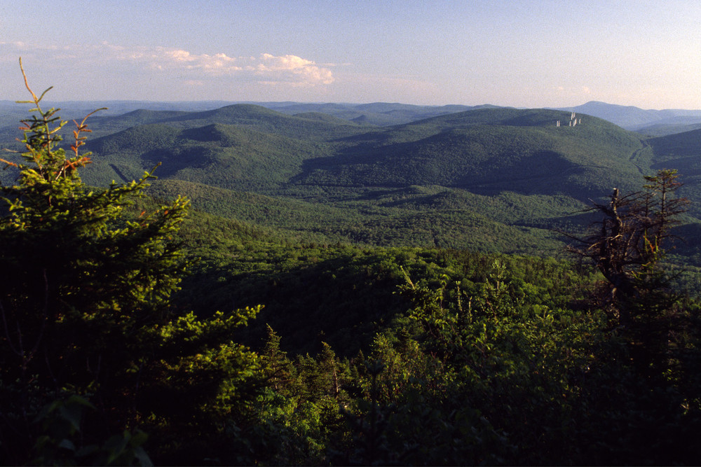 The high-elevation forests (called montane spruce-fir) that cover much of Vermont's tallest mountains, including Haystack, are easily accessible on this hike because the trail starts at a relatively high 2400 feet above sea level.