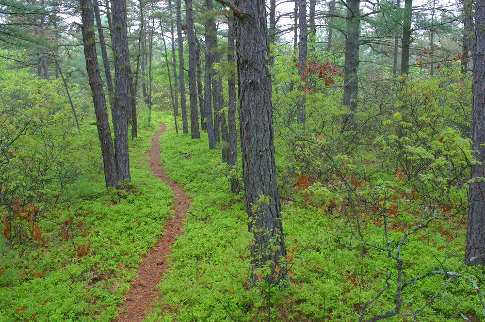 Cooks Pond Forest Loop Trail - 2.4 miles (green and yellow blazes) - This loop meanders through oak forest, pitch pine-scrub oak woodland and eskers, providing views of Cooks Pond and its associated wetlands.