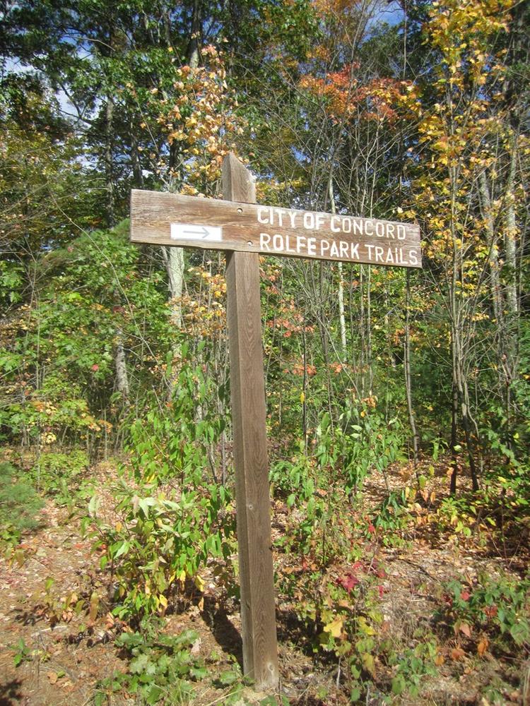 Rolfe Park is located at 79 Community Drive in Penacook. The trail begins at the northeast corner of the athletic field. Park in the parking lot near the swimming pool and walk east along the tree line on the north edge of the athletic field to the Rolfe Park Trails sign.