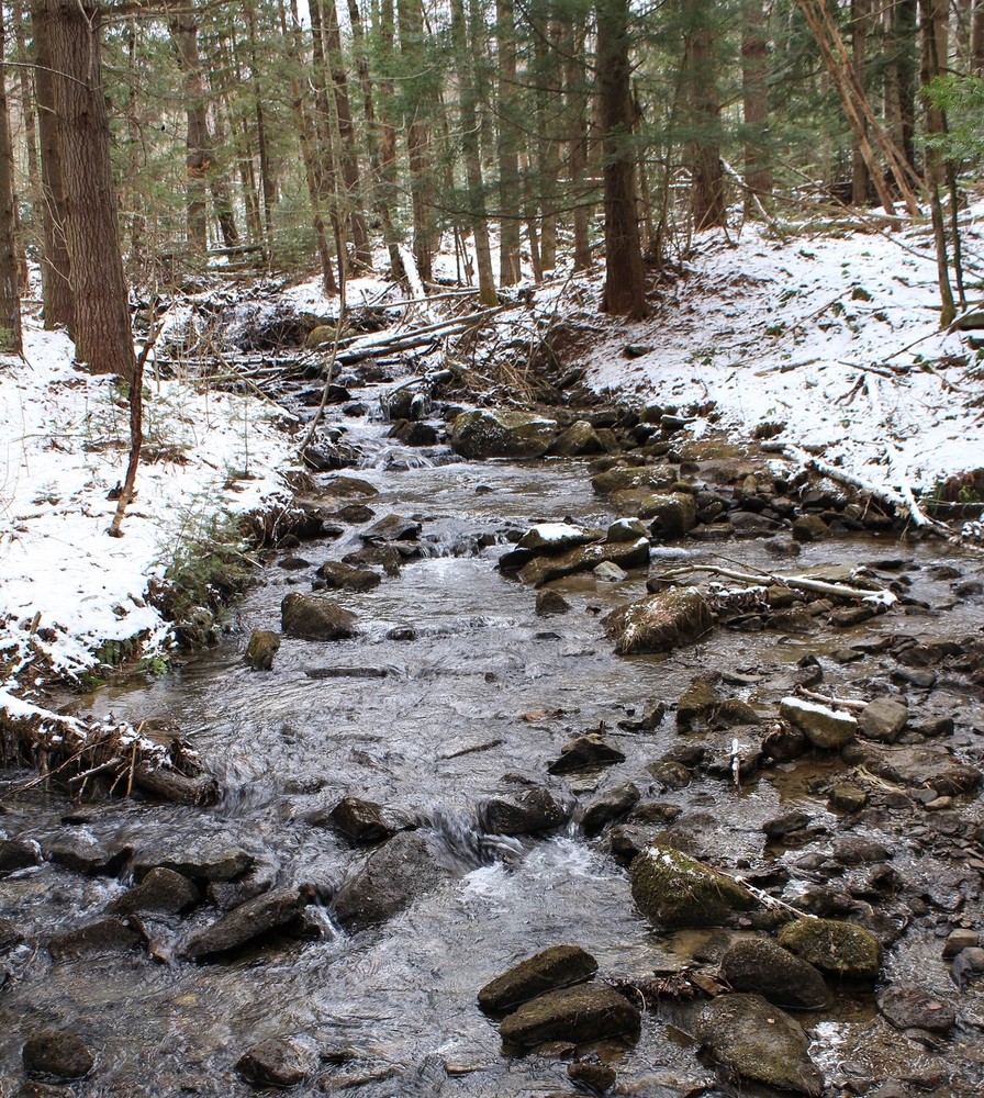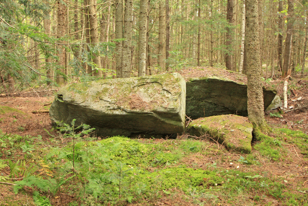As evidenced by the stone walls that crisscross the land, much of the sanctuary was once open pasture. Today the sanctuary is almost completely wooded with a diversity of habitats ranging from wet meadows to northern hardwood and conifer forests. Several streams, including Scotland Brook, flow through the property, and beavers have created a series of ponds and wetlands in the southern portion of the sanctuary. Other interesting natural features include the large glacial boulders at the junction of the Yellow Trail and the northern end of the Red Trail, which were deposited about 12,000 years ago by the continental glacier as it receded.
