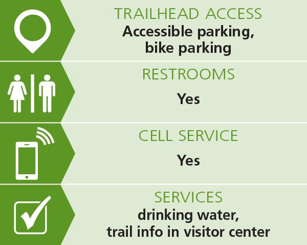 There is a picnic area and small boat access near the trailhead. Dogs must be leashed.