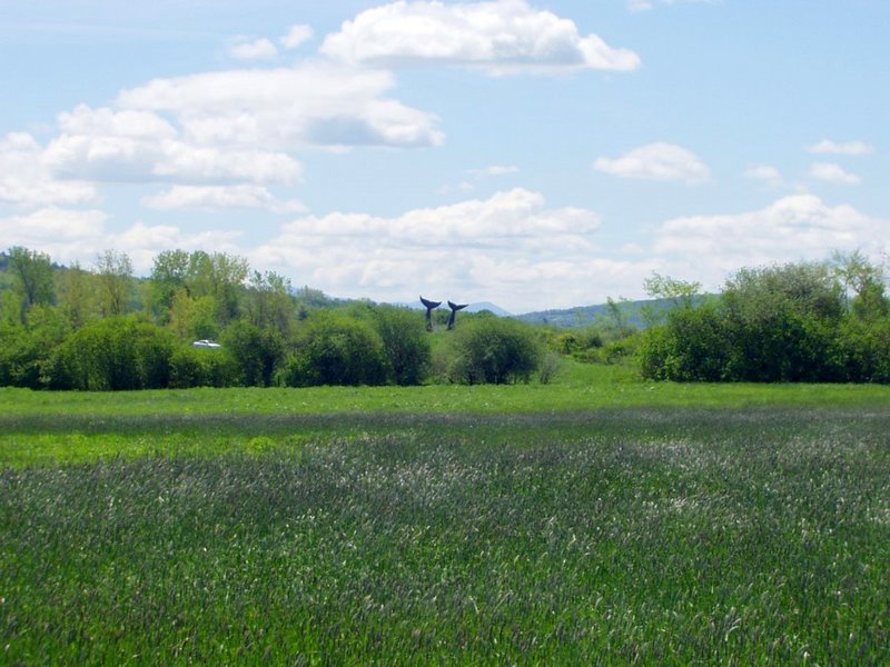 Vermont's famous Whales' Tails sculpture is seen by thousands every day -- er, rather, hundreds (this is Vermont) -- as they whiz by in their cars on I-89. This trail will take you around for a close-up look at the black granite sculpture, which stands 12-13 feet tall. The sculpture's real title, "Reverence," is meant to evoke the fragility of the planet. Jim Sardonis of Randolph, VT, created the piece in 1989.