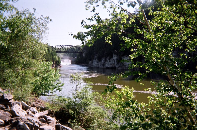 This is a very scenic trail that goes along the Winooski River to the falls, with rock cliffs and the railroad trestle crossing the river. It's generally well-maintained and easy to walk, except for a few steep inclines. An enjoyable and worthwhile walking experience.