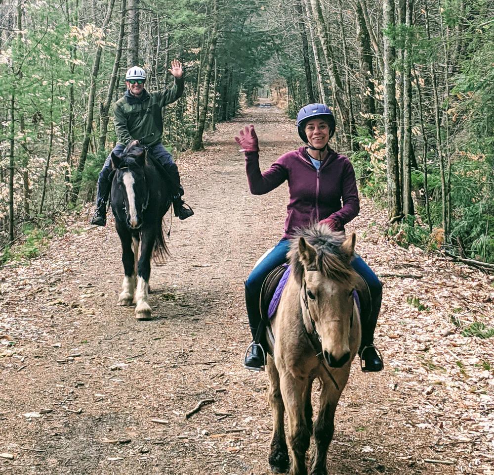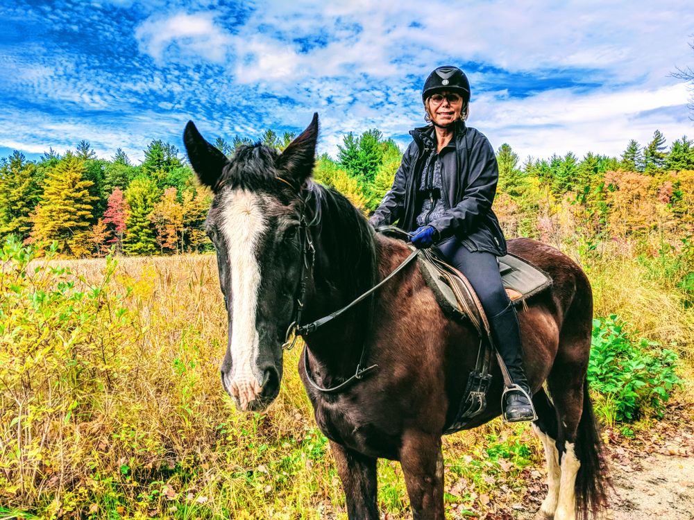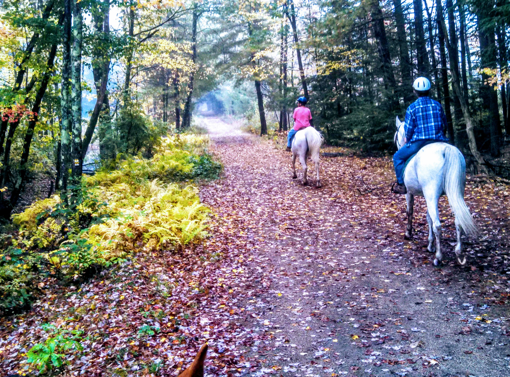 On horseback with Jan Brubacher as your mounted guide, you will branch off the network to adjoining trails in the Great Spruce Swamp, a 1,400 acre conservation property and local country farm in historic Fremont NH.