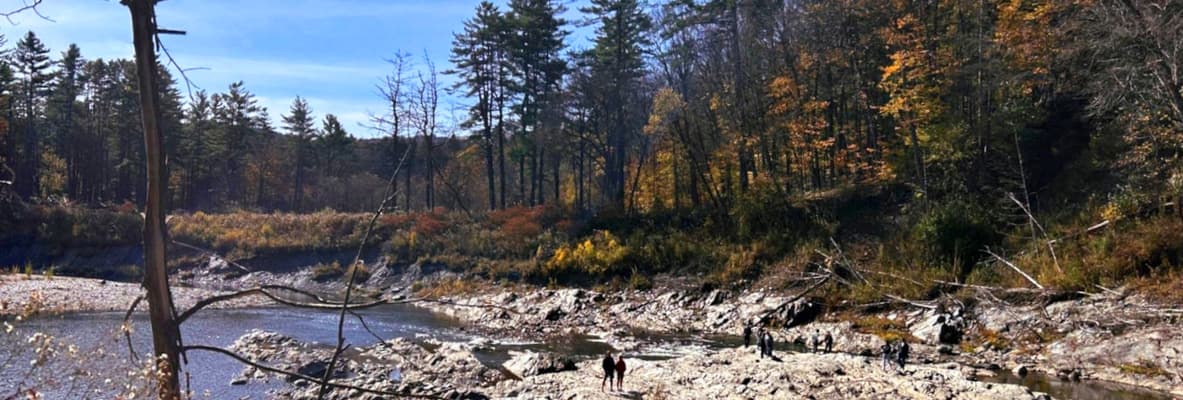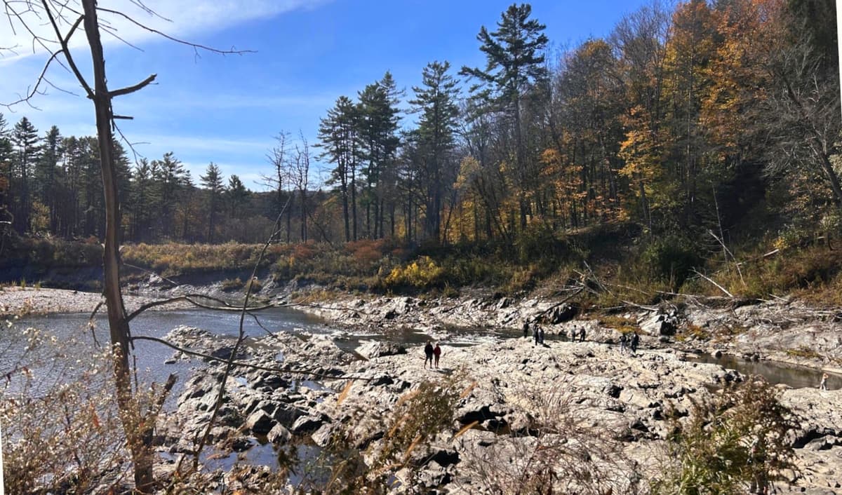 Eventually we made our way to the bottom where the gorge became a reservoir of calm water with small islands and exposed rocks. Kids, families, and dogs enjoyed the rocks soaking up the warm fall day. Waterlines etched in the cliffs made it clear how severe Vermont’s current drought truly is.
