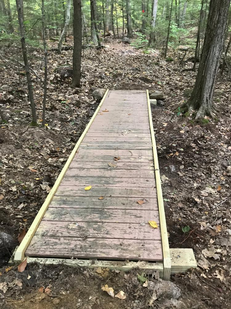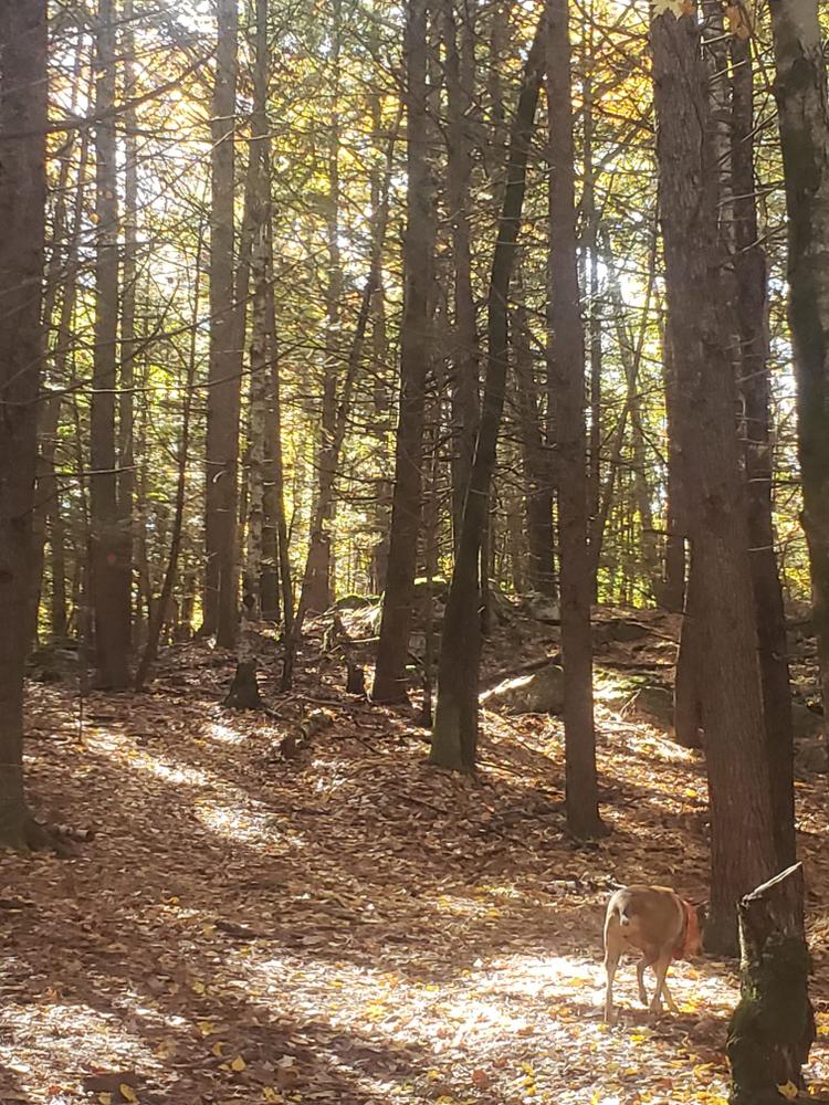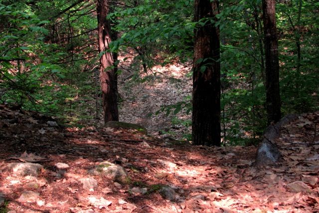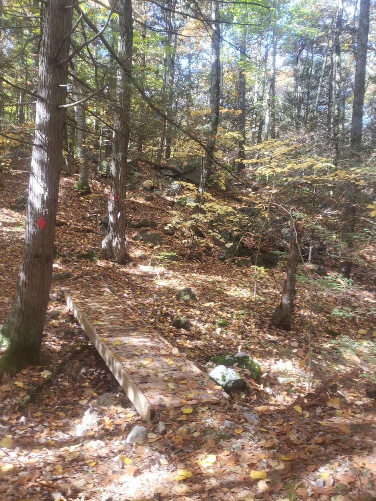 The easy to moderate main trail is a 1.5 mile loop marked by red blazes. It follows old logging roads through a white pine forest. Some newer trails sections have been added to complete the loop within the forest’s boundaries. There are several side loops and spurs along the loop. Please be aware that some of the spur trails lead to private land.