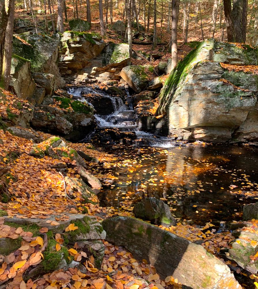 The Rice Preserve is a 15-acre parcel that features steep glacial eskers, seep wetlands, and beautiful cascading waterfalls.