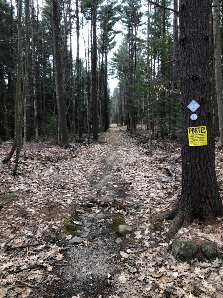 Old Railbed trail runs the center of the property navigating to views of Manta Brook at one end and pasture land at the other. There is a stone wall border trail as you enter that meets the rail bed at the end.