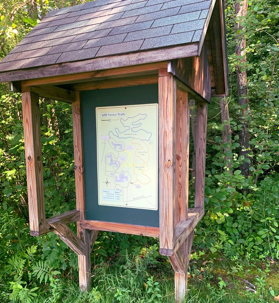 Alice Peck Day Memorial HospitalThe APD Nature Trails have four trailheads. The main APD trailhead has a dedicated dirt parking lot, while Woodlands East trailhead, Woodlands West trailhead, and Harvest Hill trailhead are accessed from paved resident/visitor lots.