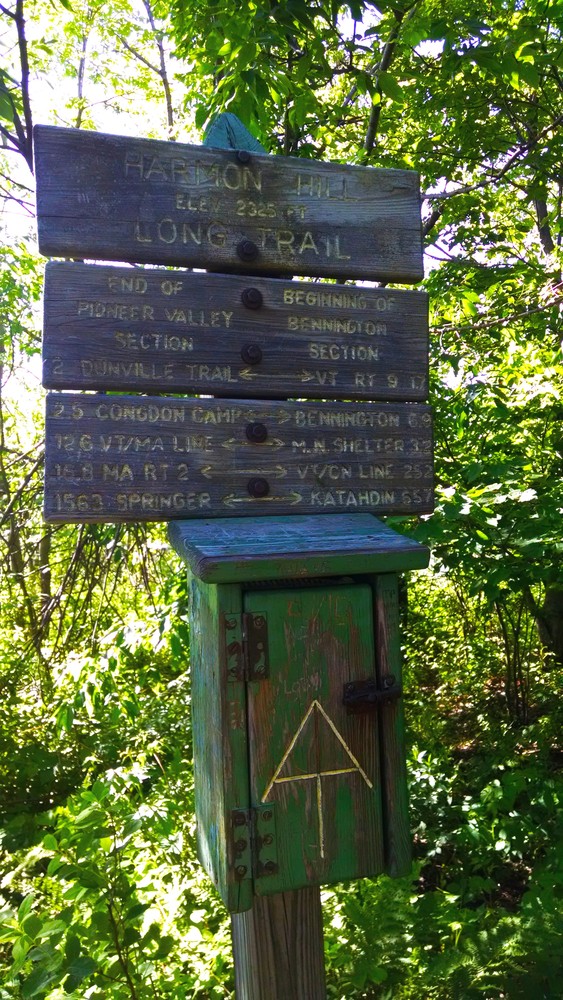 Bennington County Regional CommissionThe Appalachian Trail / Long Trail (AT/LT) crosses RT 9 five miles east of downtown Bennington, VT; and 15.8 miles west of downtown Wilmington, VT. Pedestrian crossing signs warn of the approach. There is a U.S. Forest Service parking lot on the north side of the highway, just west of the trail. Harmon Hill is across the road to the south from the parking lot.