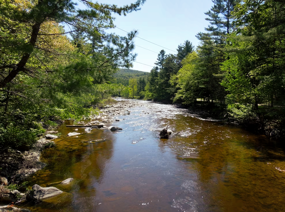 From the east/Townshend, take VT-30 N, for 10.6 miles from its intersection with VT-35 to Ball Mountain Lane on the right. Go 0.8 miles down Ball Mountain Lane to the Angel Falls/West River Trailhead, or continue an additional 0.9 miles to the dam.
