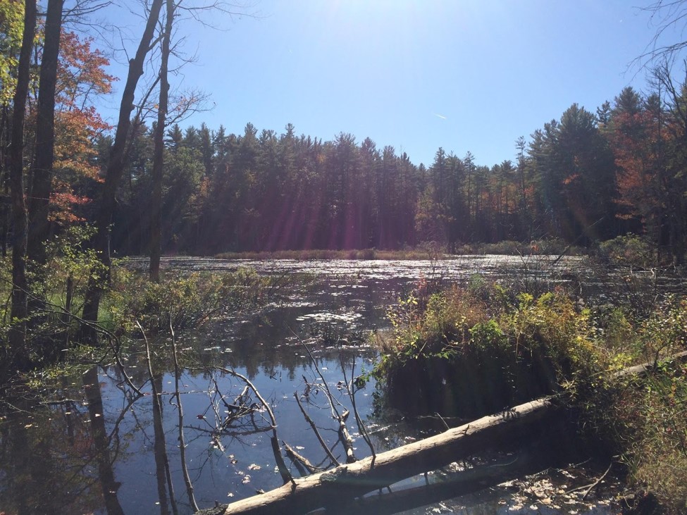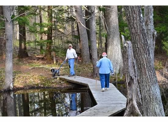Following the path through the area will provide the walker, cross country skier or snow-shoer glimpses of the pond, streams and an old wagon ford.