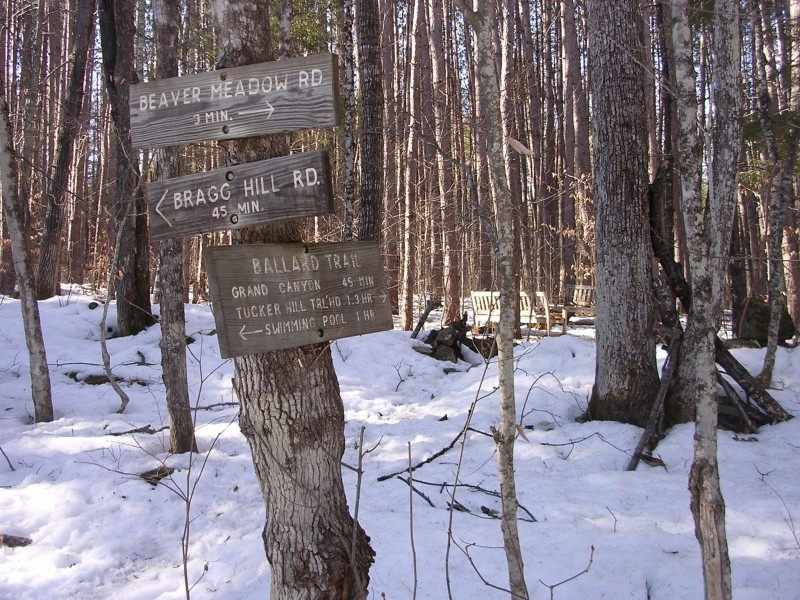 Three parking areas provide access to the trail off Beaver Meadow Road in Norwich (the first left turn immediately after Dan & Whits and the Norwich Inn): the Norwich Pool (on the left just over 1 mile from the Inn, immediately before Brigham Hill Road); Parcel 5 (directly across Beaver Meadow Road from Brown Schoolhouse Road), and roadside parking (just before Tucker Hill Road).