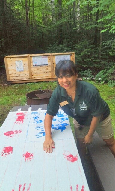 The campground sits on the mostly undeveloped Spectacle Pond where it is common to hear loons calling at night. There are 5 cabins, 61 tent/RV sites and 23 lean-tos. All three restrooms include hot showers ($). A sanitary dump station is available, but there are no hookups. In addition to the hiking trails, there is a camper's beach with boat rentals, nature museum, an amphitheater, a garage theater, and play area. At the nearby day-use area there is a long sandy beach (at the southern end of Island Pond), a bathhouse with restrooms, and rental boats.