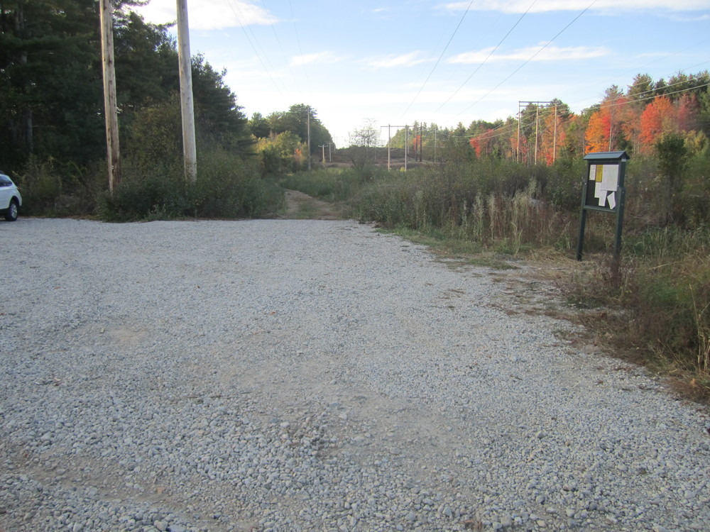 Just past the gas station, go up East Side Dr. (Rt 132), take the 2nd left onto Portsmouth St., then another left onto South Curtisville Rd. Continue to the trail-head parking