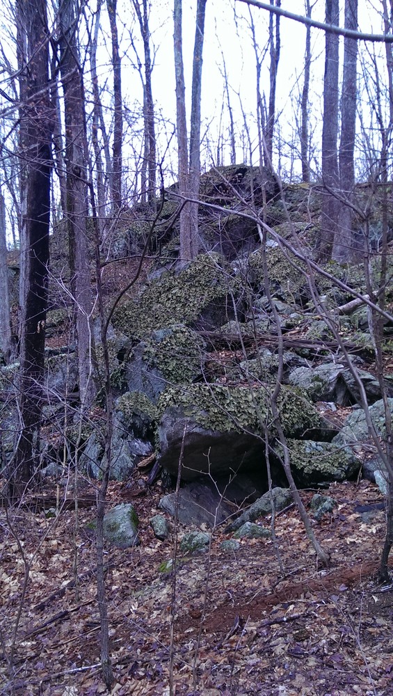 The Curtis Trail (Red) begins off the west side of the parking lot and loops back to Curtisville Rd by way of a woods road.