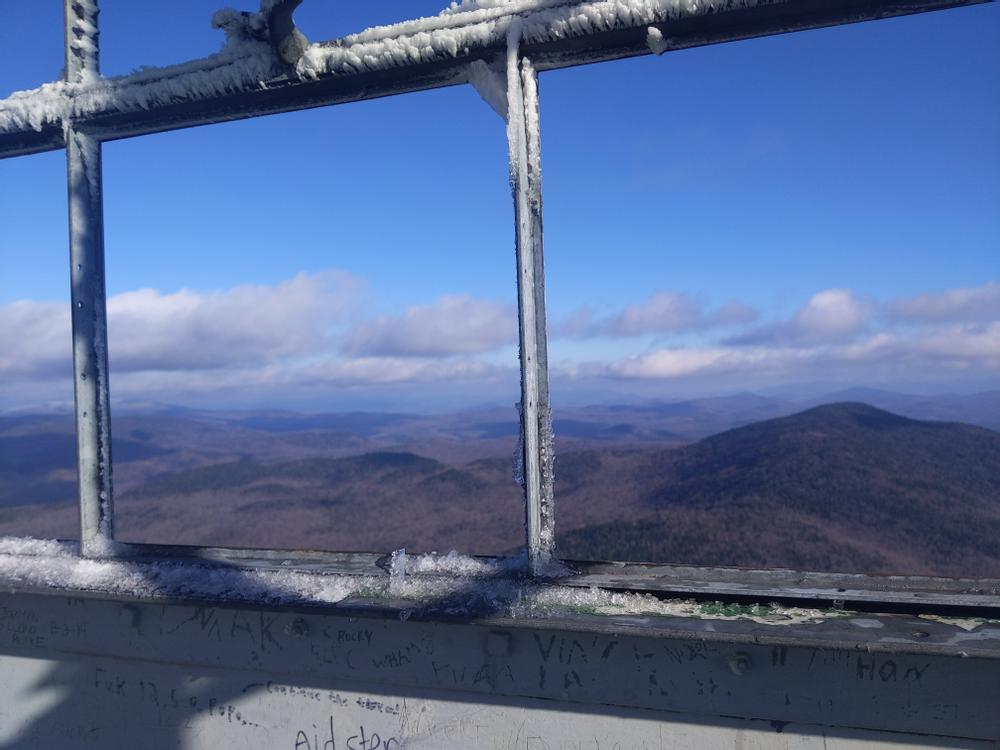 The trails converge near the summit and meet the Profile Trail which leads hikers to the fire tower on top of the mountain. From the fire tower, hikers have an up-close view of the Burke Mountain wind turbine, and can see Willoughby Gap and Sutton Ridge in the distance.