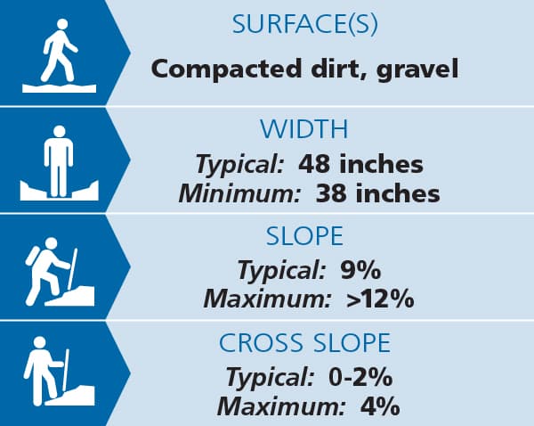 (Applies to trail from upper parking lot to vista.)