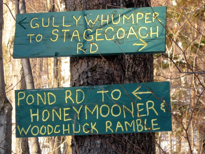 From I-89, take Exit 11 to Route 2 east to the village of Richmond. Turn right onto Main Road and drive about 7-8 miles to Huntington. In Huntington, bear left at a Y intersection onto East Street (about 2.5 miles to ski center parking from here). Continue on East Street, until it bears right and go straight onto Bert White Road. Turn left onto Handy Road and go about 0.5 miles up the hill to parking lot on the left just before the road bends sharply right. The trailhead is directly across the road.