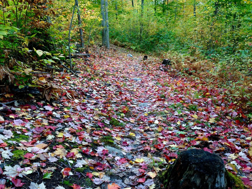 Please stay on the blazed trail and respect private landowner’s property. Do not to stray off onto other logging roads as they mostly lead you dead ends. The Carriage Trail is marked with royal blue blazes.