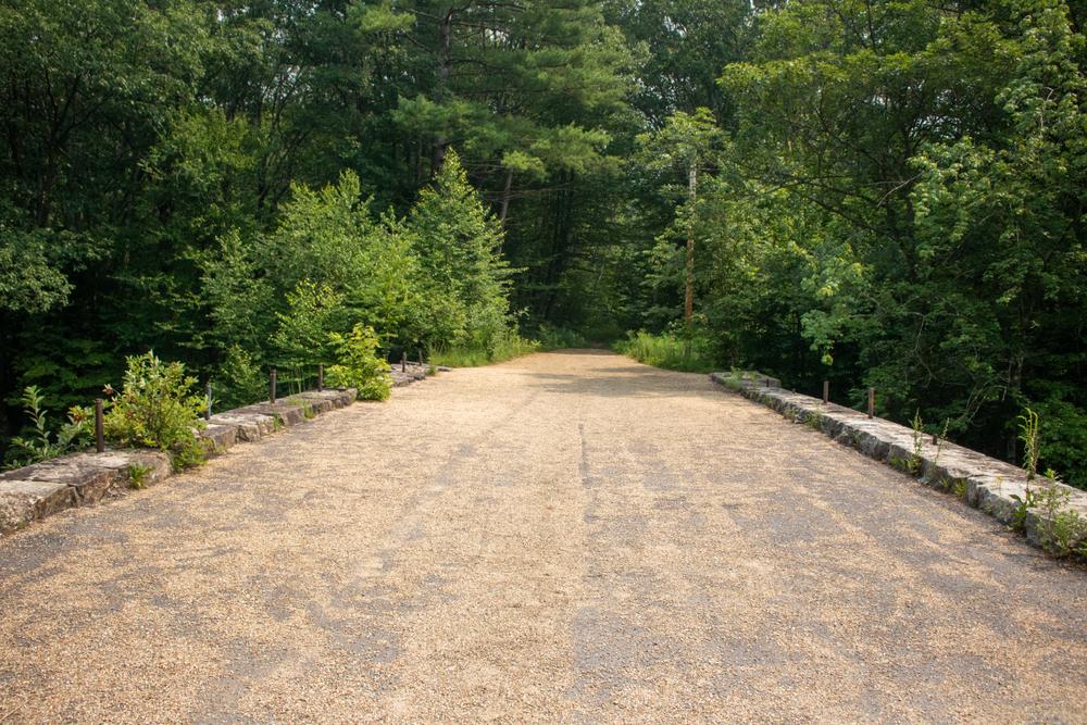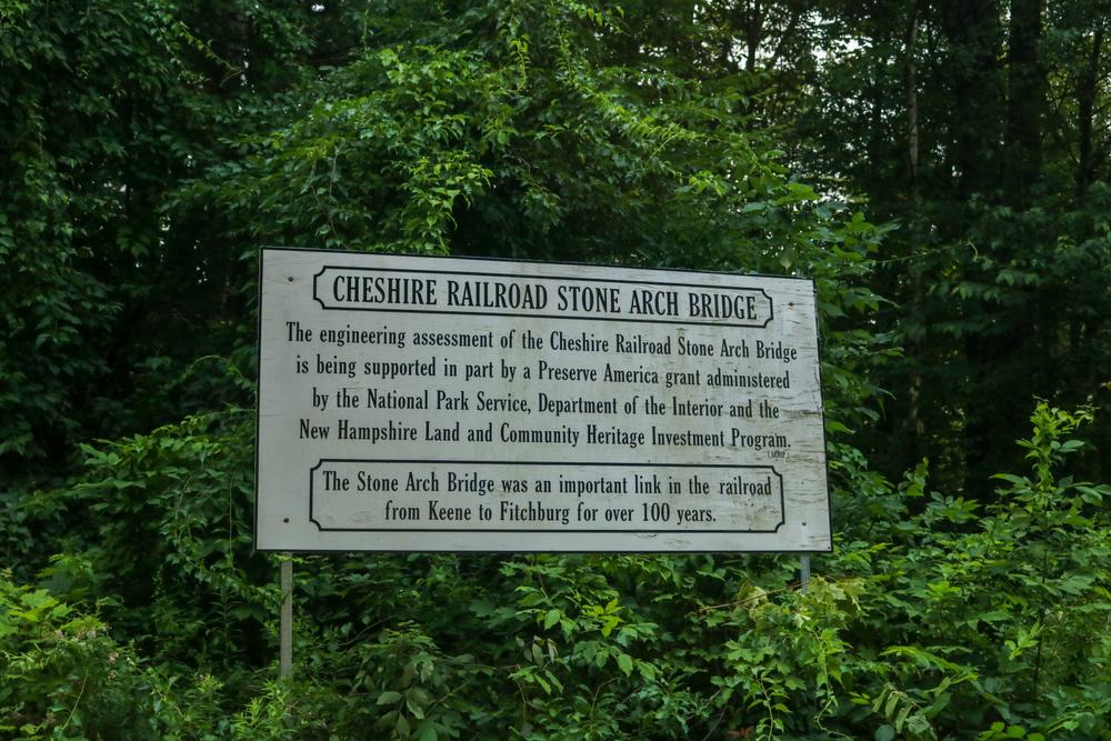 The Cheshire Rail Trail stretches for 42 miles between NH-12 near Bookseller Road and the New Hampshire–Massachusetts state line at NH-12. In Keene, the trail includes a beautiful stone arch bridge over the Ashuelot River. The trail takes a detour through Keene and then returns to the abandoned rail path on either side of downtown. The trail is used by hikers, mountain bikers (road bikes would have a tough time), snowmobilers, and equestrians. In addition, it is sometimes used by mushers in the winter.