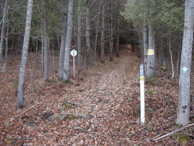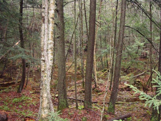 Walk into the woods along the Vermont Association of Snow Travelers trail that runs parallel to a private driveway. Continue on the VAST trail beyond the end of the driveway. The path goes through a wetland and then veers left. Immediately after watch for a Nature Conservancy trail marker which leads sharply right off the woods road and up hill. Follow the white blazes to Chickering Bog, where a boardwalk leads ahead through the fen to open water. A dead-end spur trail leads right along the fen edge, and a short loop trail leads left.
