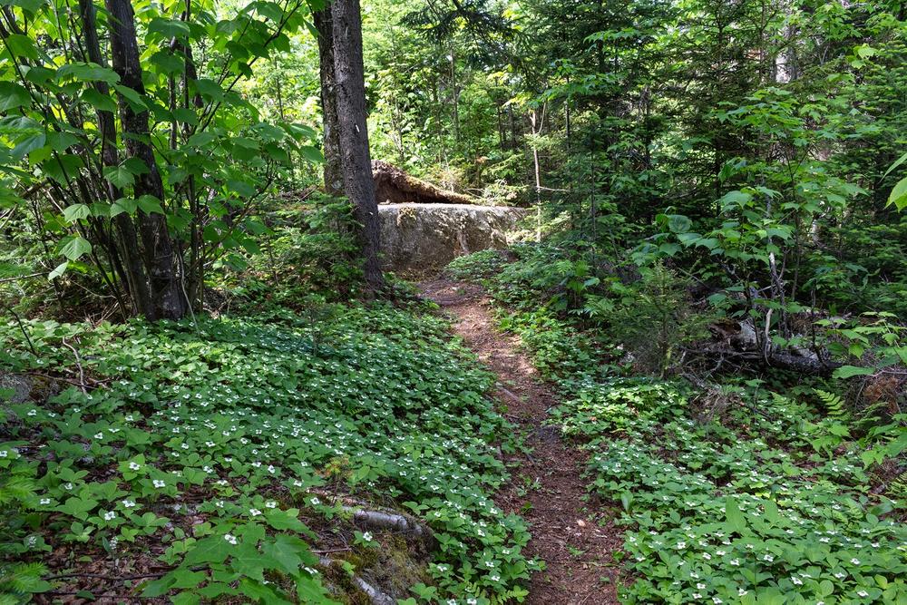 Ammonoosuc Conservation TrustComing from the south, take Exit 38 off I-93 in Franconia. Turn left at the bottom of the ramp and then right onto Routes 116 and 18 north. Drive 0.5 miles through Franconia and turn left onto Route 117. Travel 3.2 miles on Route 117 to Sugar Hill and then turn left onto Pearl Lake Road. In 0.25 miles, turn left from Pearl Lake Road onto Hadley Road. Drive 1.7 miles on Hadley Road and turn left onto Dyke Road. In 0.2 miles, take your first right onto Jericho Road and then, in 0.3 miles, your first left onto Trumpet Round Road. The parking area for Cooley-Jericho Community Forest is located at the end of Trumpet Round Road. Follow the woods road at the southern end of the parking area for about 0.1 miles to the trailhead kiosk.