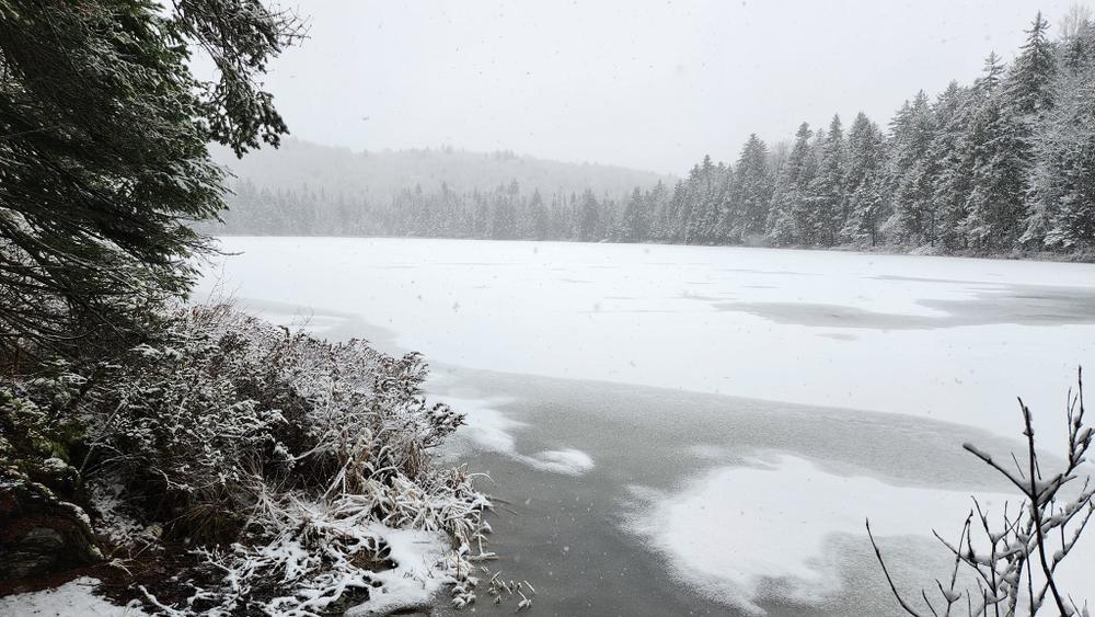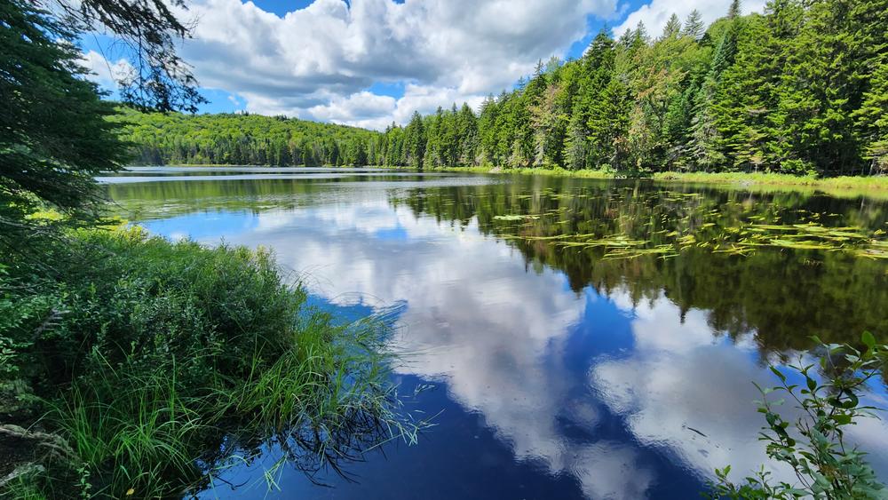 Starting from the roadside parking area/pulloff, visitors can access the Cow Mountain Pond Forest along a forest road that crosses private property for a short distance before reaching an old gate and soon an old log landing on the right- please respect private lands and landowners and do not block the road. The main Cow Mountain Pond Trail leaves the upper corner of the log landing and climbs southward to a smaller landing and the junction with the Cow Mountain Trail, which continues to the left. From the junction, the Cow Mountain Pond Trail descends gently a short distance and soon reaches the undeveloped shore of Cow Mountain Pond.
