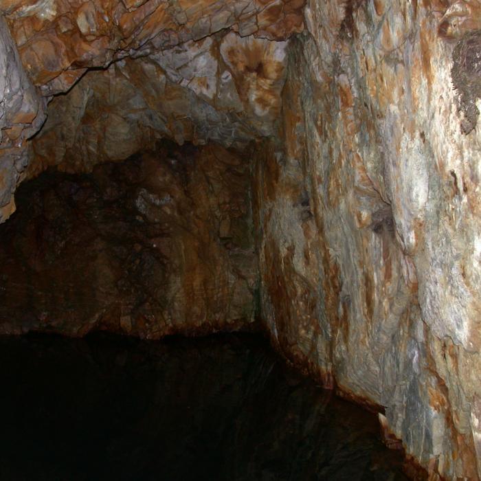 The most unique feature of the property is the old gold mine, operated by the Whitefield Mining Company until 1885. The gold mine is an excavated cliff face now filled with water and rock from the cliff above. Historical records describe the mine as descending over 100 feet, following a fracture in the underlying gold bearing rock. A very limited amount of commercial gold was removed from the site before it was determined to be uneconomical and closed.
