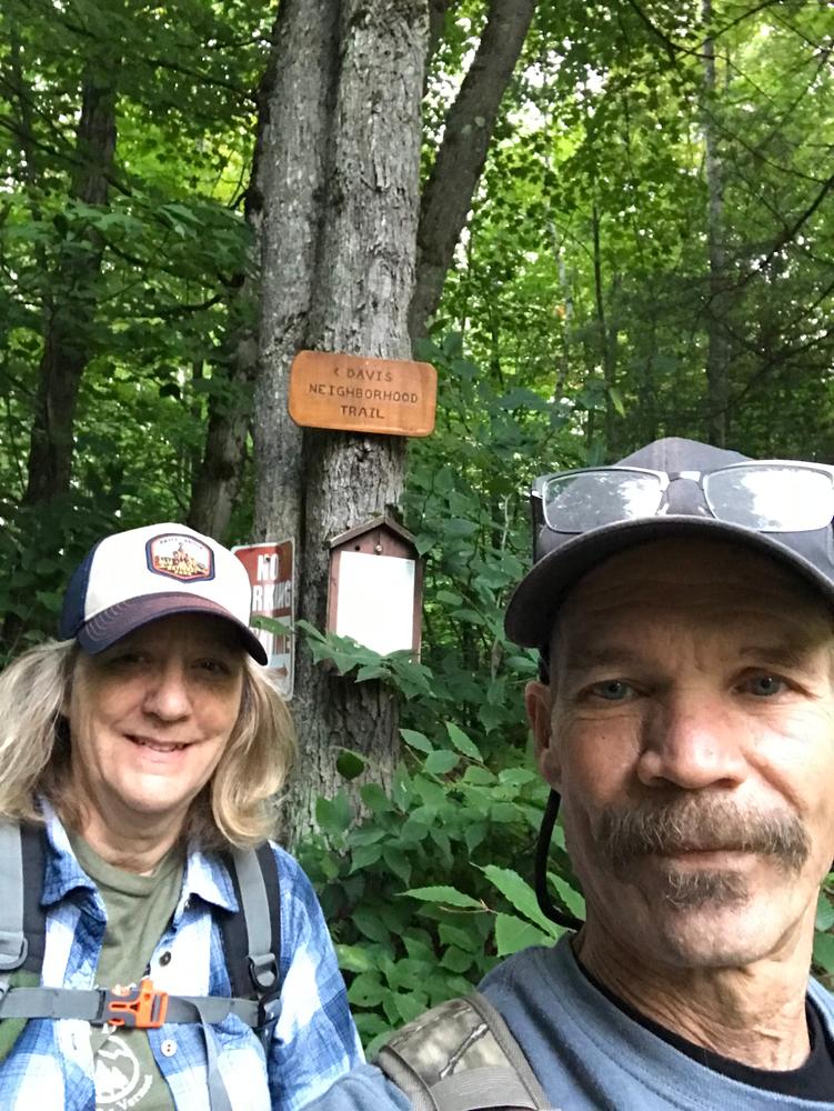 From Cross Road, the Davis Neighborhood Trail follows a logging road north. It ascends moderately past a camp and then to the boundary of the Long Trail State Forest. Upon entering the State Forest, the trail continues on a now-abandoned road uphill past the site of the former Parker Camp, 1.2 miles from the trailhead. The Davis Neighborhood Trail reaches the Long Trail just past (east of) Corliss Camp, 1.5 miles from the trailhead.