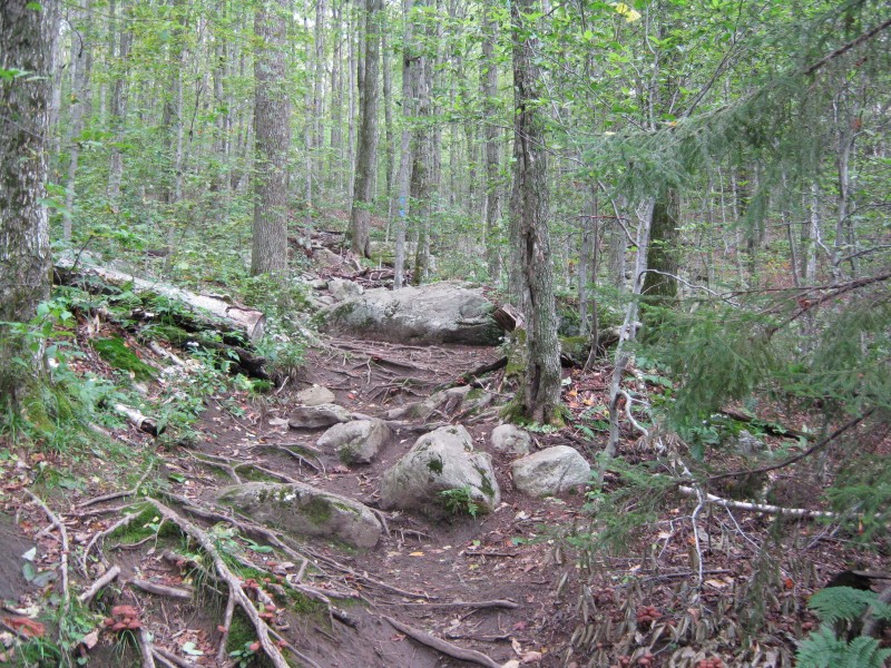 Continuing north from the spur, the trail drop to a brook before climbing again to the top of Deer Leap Mountain. It then descends gradually to the north until reaching its western junction with the AT, 1.3 miles from the trail's eastern junction with the AT.