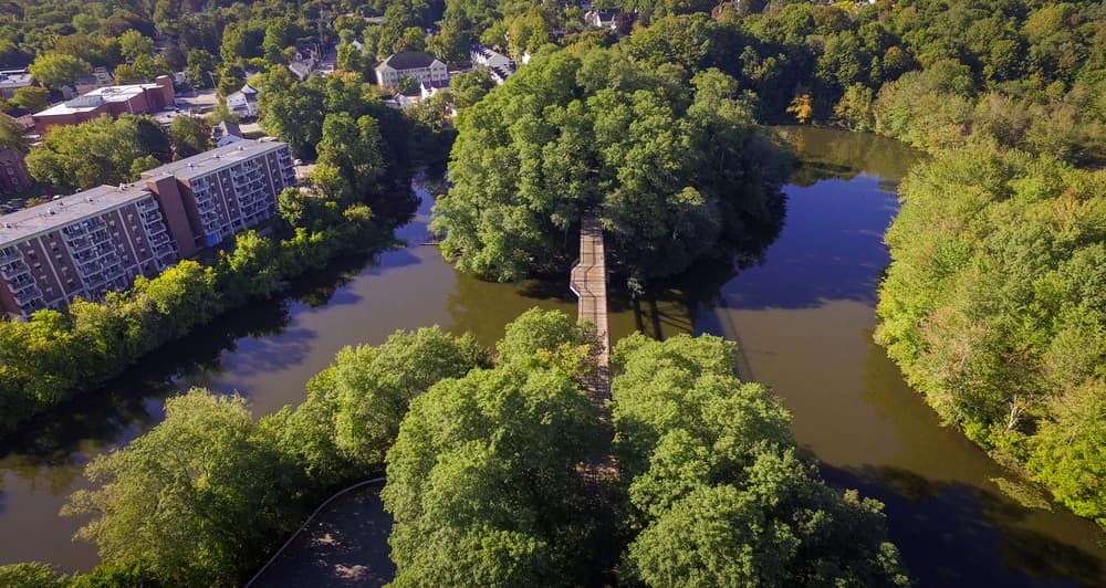 You may use the city sidewalks to reach Chestnut Street, where you can access the remaining 0.76 miles of the trail from the Transportation Center Parking lot. Look for train tracks/crossings as there are no signs to help with navigation. The Transportation Center trailhead offers ample parking and is within walking distance of downtown restaurants and shops. From the Rotary trailhead, this paved section continue south over a wooden bridge with a scenic view of the Cochecho River. At the intersection of Washington Street, the trail continues across on Scenic Drive, south past Silver Street through quiet and shaded residential neighborhoods until it terminates at Fisher Street.