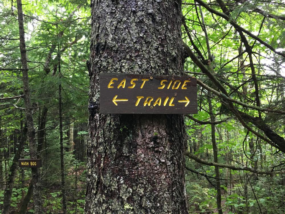 Drive 8.2 miles on Nash Stream Road. Just before a bridge over Nash Stream, there is space for a couple cars to park along the roadside by the trailhead on the right. Look for the East Side Trail sign that marks the trailhead, at the base of a stone stairway.