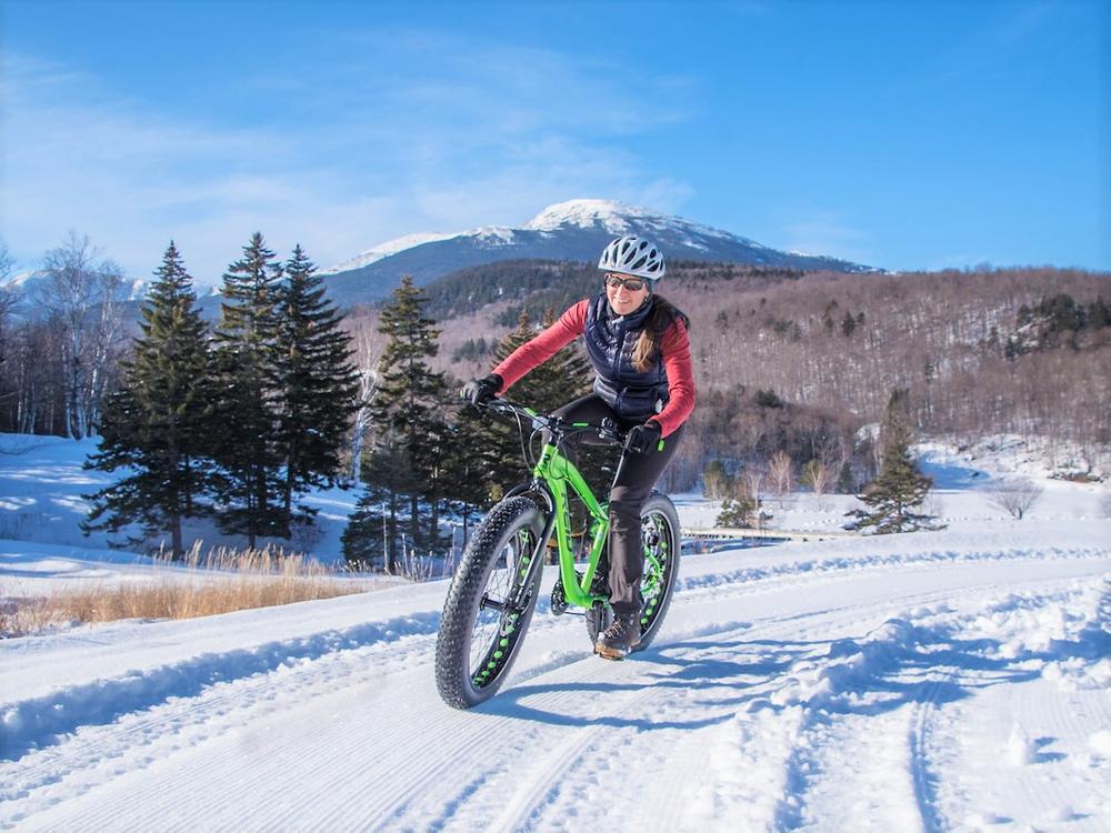Groomed and backcountry trails for skiing, snowshoeing, and fatbiking offer spectacular views up to the Great Gulf Wilderness and the Presidential Mountain Range.