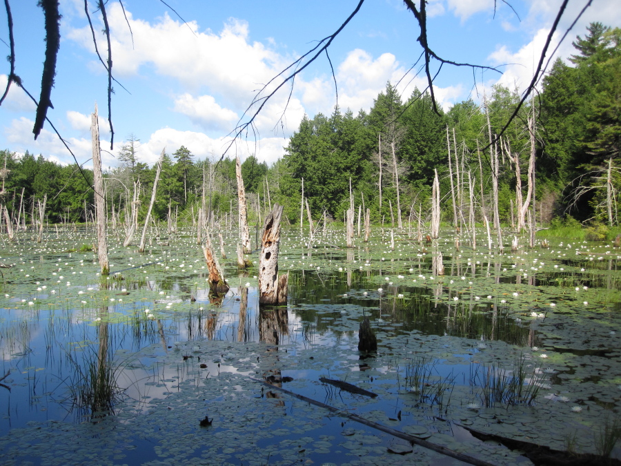 The 713 acre Hamlin-Eames-Smyth Conservation Town Forest is managed by the Meredith Conservation Commission and provides excellent hiking, snowshoeing, skiing, and wildlife viewing. Highlights include views of the White Mountains, active beaver ponds, and old growth forests.