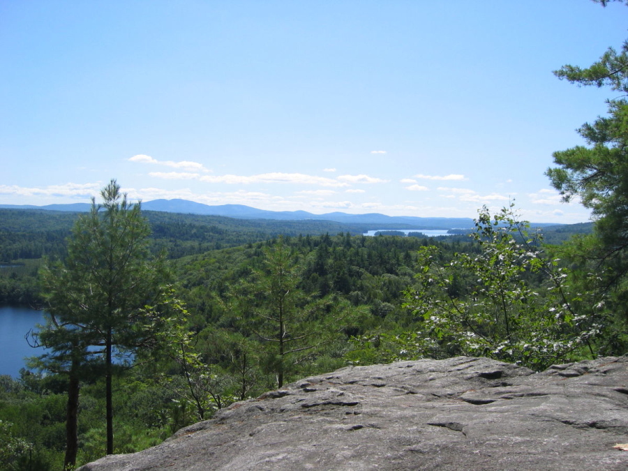 Crockett's Ledge (Yellow Blazes): The trail to the Crockett's Ledge overlook of Lake Wicwas and Lake Winnisquam has a round trip distance of 2.7 miles with 400 feet of elevation gain/loss and hiking time of 1 hour 30 minutes. The upper half of the trail is a loop that allows for an alternate return route.