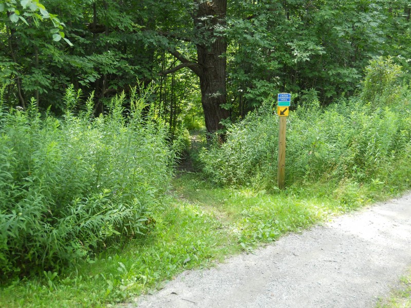 To remain on the Cross Vermont Trail, going east, stay on Huntington Road, to the Richmond Round Church, and then take Cochran Road towards Duxbury. To go west, take a left on Route 2 at the end of Johnnie Brook Road, towards Williston, then right on Governor Chittenden Road at the foot of French's Hill.