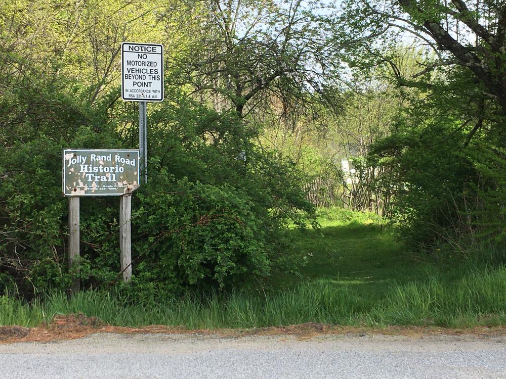 The Jolly Rand Scenic Trail is a historic cart path that can be found on the 1802 Phineas Merrill map of the Stratham/Exeter area.  Though abandoned as a roadway, the Town officially designated it as a scenic trail in 2005.  This well marked and easy to follow trail traverses mixed forests and makes a great north-south cross town connection between Brentwood and Pickpocket Roads.