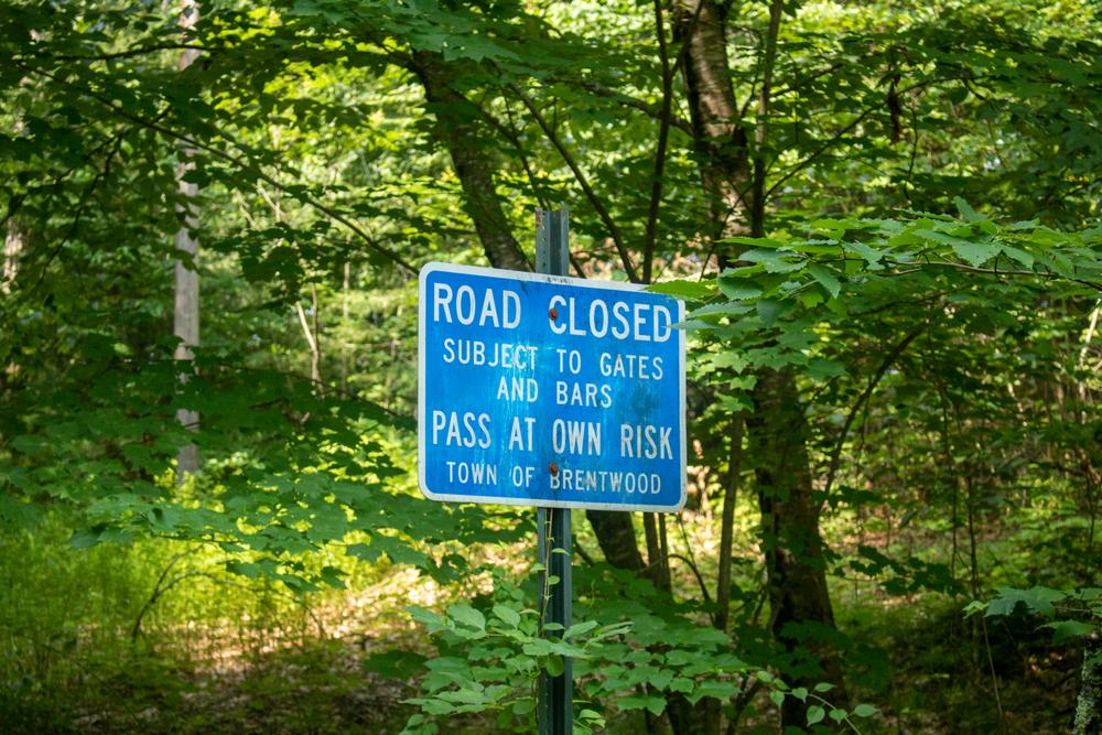 Town of BrentwoodTo get to this trailhead, take NH-111A and turn onto Haigh Road. Old Gordon Road will be on your right. The trailhead is off of the dirt road portion of Old Gordon Road. You can park on the side of the road where Old Gordon Road becomes a dirt road. The dirt road has a blue Class VI sign at the end. Walk down the dirt road for about 0.3 miles. At 0.2 miles, a private driveway branches off to the left. Continue straight on the Class VI road for another 0.2 miles to the trailhead. The trailhead has a white sign that says "No Vehicles" visible on the left-hand side of the road high up on a tree. After you pass the driveway, the Class VI road also becomes a Class A trail which leads to Crawley Falls Road.