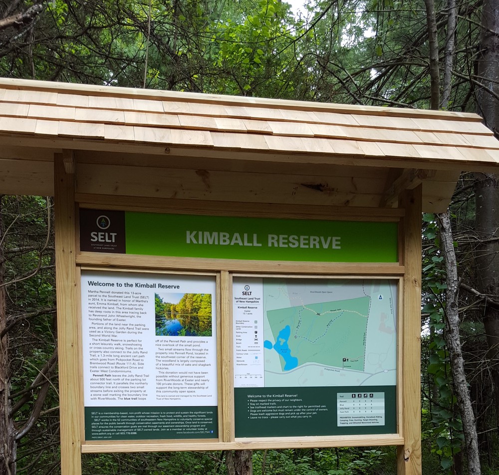 Martha Pennell donated this 13-acre parcel to the Southeast Land Trust (SELT) in 2014. It is named in honor of Martha’s aunt, Emma Kimball, from whom she received the land.The Kimball family has deep roots in this area tracing back to Reverend John Wheelwright, the founding father of Exeter.