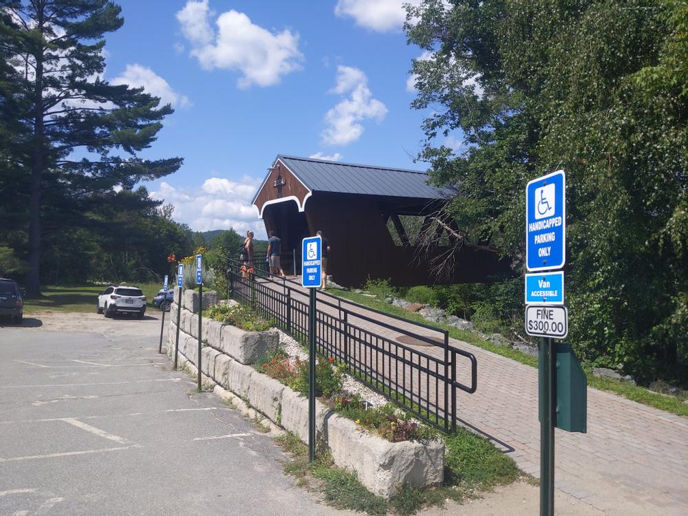 There is also a larger gravel surface lot available if you continue past the covered bridge.