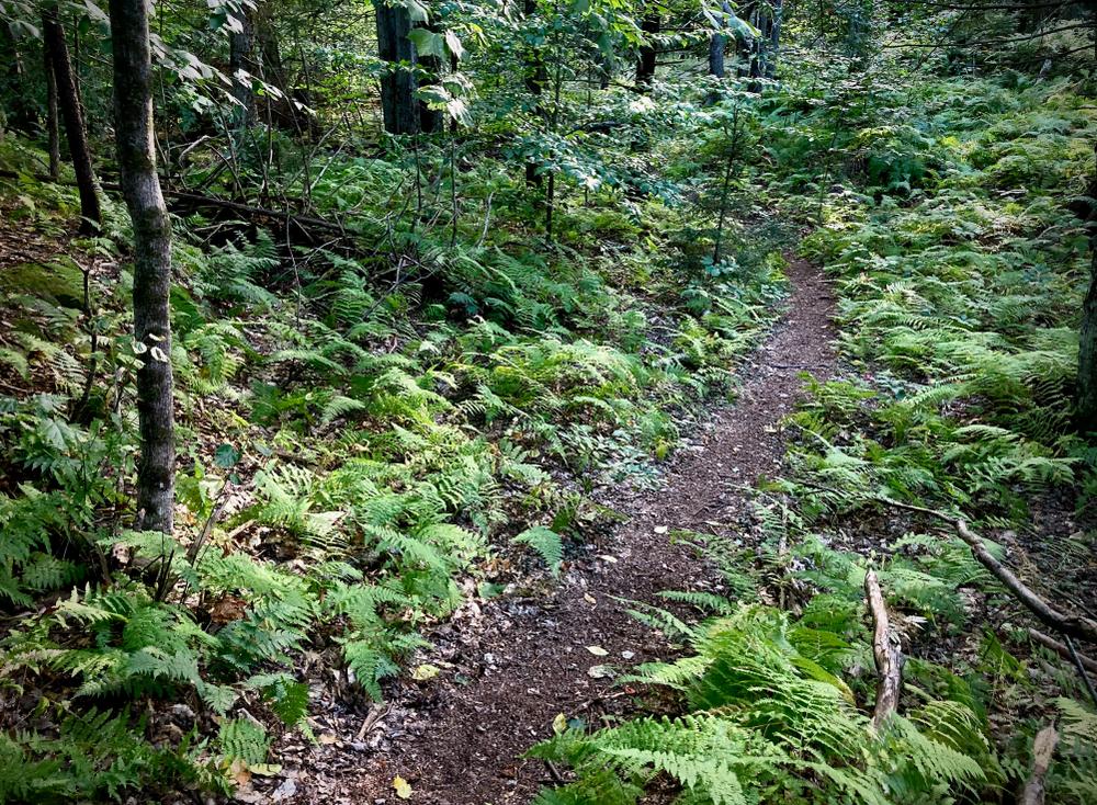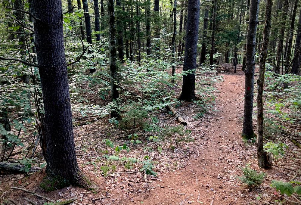 The Lost Mine Trail is a moderately challenging two mile loop. Hiked counter-clockwise, the trail climbs from Reservoir Road up the hillside through several switchbacks to a viewpoint overlooking Mt. Ascutney. On this stretch of trail, which follows alongside a brook, a trail diverges to the left and connects to the Butternut Hill Trail. At the very end of the Lost Mine Loop, there is a short but steep and difficult section.