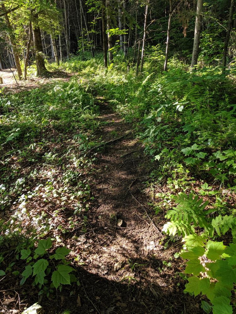There are many loop options available. The perimeter trail, Permit, is 1.8 miles long. Fun intermediate trails, such as Mossland and Jack Pine diverge from Permit. Hemlocks and Wedgey both feature steeper slopes on a gully and are for more experienced riders. The easiest trail, Phloem, loops inside the other trails.